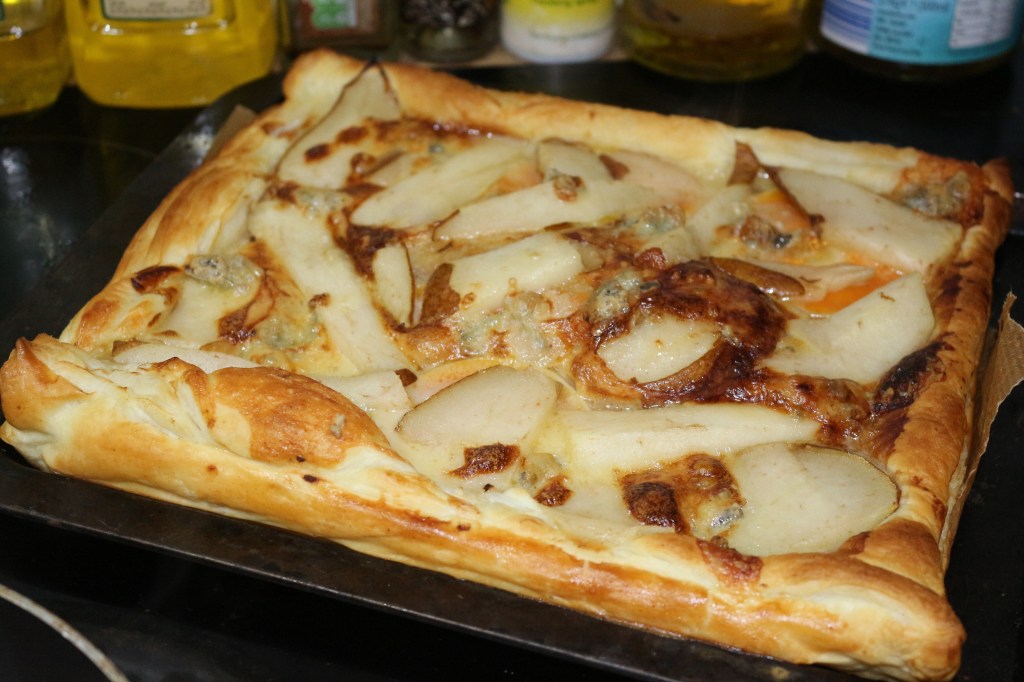 From the photos, you’ll notice that there are two versions of this tart that I made. The first used all the ingredients, but I wasn’t happy with the base, so decided to remake it, and the second version was spot on. Having said that, I didn’t have enough puff pastry or any pears the second time, hence the smaller tarts and fewer toppings.