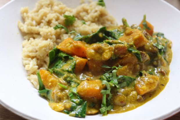 My plant-based butternut squash spinach curry recipe can be found here on the blog