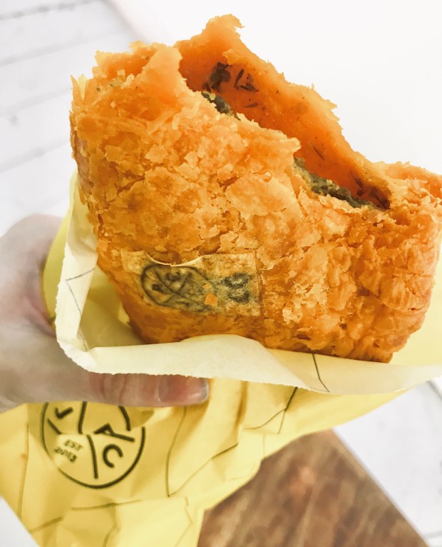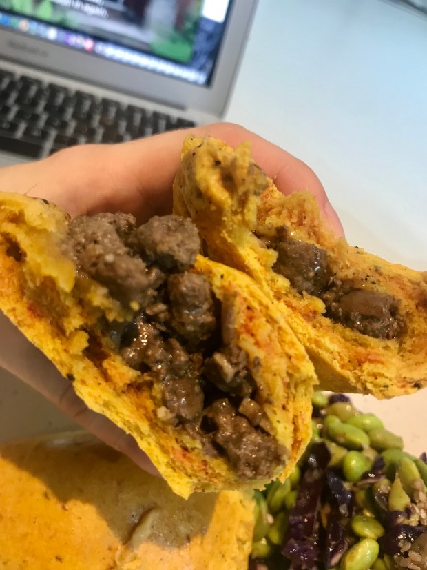 I first tried a patty from the Jamaica Patty co. in London but instead of the traditional beef, I opted for a curried goat version. The pastry was a really vivid orangey hue, and was incredibly flaky – imagine it like biting into a croissant, and as you do so, loads of flakes of pastry, big and small, break away, and at the end, you’re left with a paper bag full of thin pastry flakes. The filling was so delicious – a super rich, deep in colour curried goat, tender in texture and full of flavour. My first patty experience was a winner and I’ve loved the concept of them ever since. I’d even say the flavours appeal to me way more than Cornish pasties – I much prefer a pastry packed to the brim with a meaty filling rather than padded out with carby veg and potatoes.