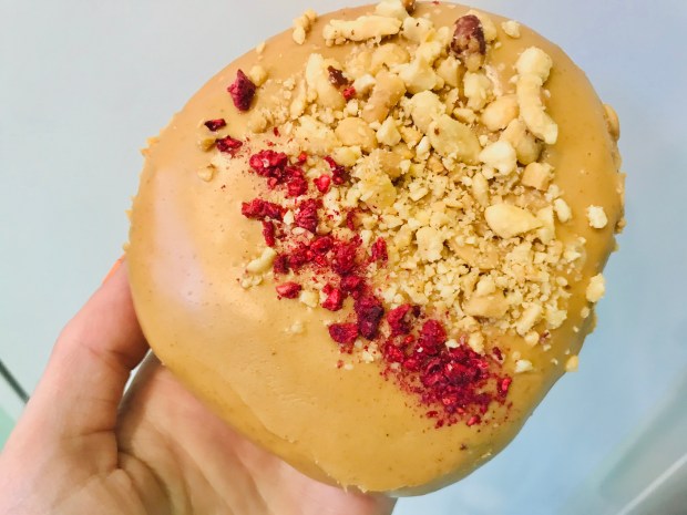 Dreamy indulgence from Doughnut Time is next on the list. They genuinely do the best vegan doughnuts, which are no different in taste to their normal range. I’d frozen their Vegan Fox doughnut last month as it was part of their Valentine’s range but I’d eaten so much I couldn’t justify trying this one too, so rather than miss it, I shoved it in the freezer ready for a rainy day. Cue lockdown and I’d never been so grateful for this level of resourcefulness. It’s not recommended that you freeze these doughnuts but that won’t stop me. After defrosting and 20 seconds or so in the microwave, I had the most delicious, soft-doughed, melty-buttercreamed chocolate doughnut. The fudge buttercream is incredible and I really hope they give a vegan chocolate doughnut like this one a permanent spot on their menu. Failing that, the David Hasselbiscoff is one of the best doughnuts of all time.