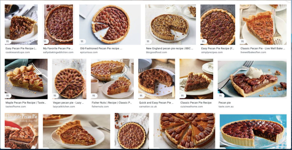 Closely linked to Thanksgiving and Christmas celebrations, there are a number of variations of Pecan Pie, the most common being with the addition of Bourbon whiskey – another product which is also symbolic of the deep south. Occasionally, chocolate or chocolate chips are added to the pie, although this seems to be less ‘traditional’.