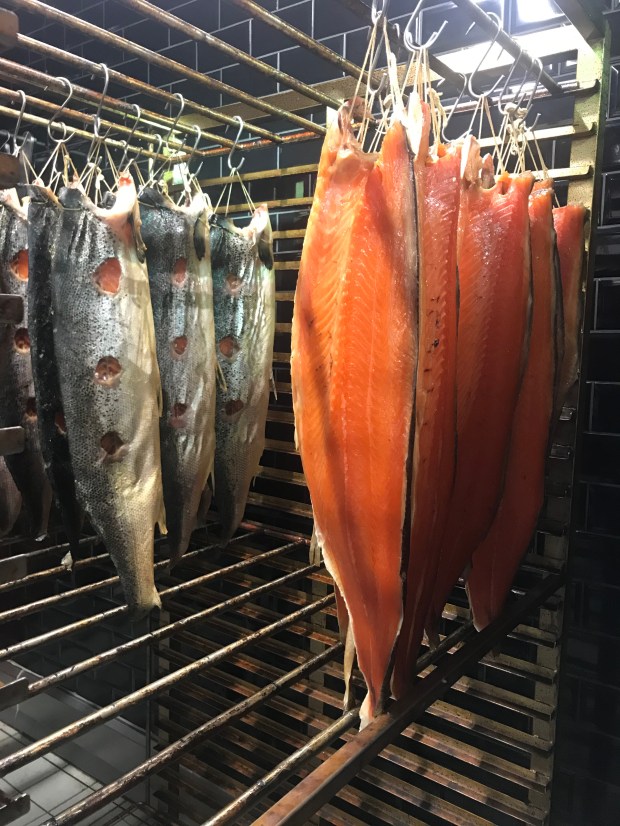 I love seeing where the food I eat comes from – admittedly some of those places would probably shock, and maybe even disgust me, but in this case, visiting Forman and Field’s smoked salmon factory was fantastic. From the enthusiasm and passion of those behind the family-run business, to the quality of the food they produce and serve, it was a wonderful day, and really interesting to see the whole process, from the salmon arriving into the factory, whole, to it leaving in neat little packages.