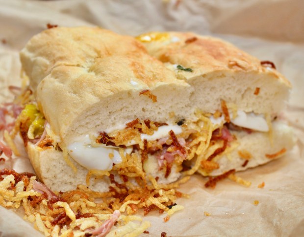 The first sandwich I tried from Max’s was life changing. The Ham, Eggs and Chips Sandwich (below) is the best sandwich I’ve ever had, but it’s not only been devouring his sandwiches from the shop that I’ve loved. I also bought his recipe book, giving you all the recipes for his best-loved sandwiches and fillings plus plenty more. The reviews for this on Amazon are hilarious and just go to show how many morons there are in the world, but I can tell you the focaccia recipe is fantastically foolproof. In case you needed further proof that this book is worth buying for any sandwich fiends, here’s my attempt at his Spaniard Sandwich, with everything made from scratch (to the left).