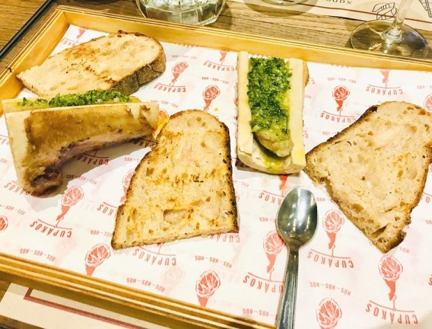 Yet another amazing biscuit, this time sweet. I’d read about this on a blog, but had not anticipated how incredible it would be. Texturally, this was like a cross between bread, sponge and flaky pastry all in one. Added to it being served warm, and filled with a sweet strawberry jam and thick cream, the taste and texture were sensational. Of course one dish wasn’t enough though so to drink (or as a dessert – you decide) I ordered a peanut butter hot chocolate. Again, superior to all London hot chocolates, this was super thick, with lots of peanut butter flavour on the surface but without being too sickly, and then the gooiest, melting marshmallows to finish it off. And if you think I finished here, you’re wrong. What about my savoury course? Flavour-wise, the bbq shrimp toast wasn’t as mind-blowing, although the bbq sauce was nice, and the melting cheese was a great addition. But again it was the texture I loved. This was a perfect example of how savoury French toast works. On paying my bill I told the waitress that I’d been to Commander’s Palace yesterday but that I’d come back to Willa Jean a million times over before going back there.