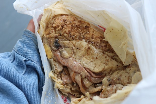 As far as I know, London has a couple of New Orleans/Louisiana style eateries, one of them being street food traders Bayou Bar, who produce delicious po’ boy sandwiches. Just before going away I’d seen that they’re hosting a Bayou Crayfish Boil at the end of this month, which I immediately bought tickets for, and contacted them to let them know what a coincidence it was that I was just about to visit NOLA when I’d heard about this event. They were hugely enthusiastic about the city and urged me to visit the deli-grocer’s Verti Marte, which during my trip I actually heard a couple of other people raving about in passing conversation, and so I knew I had to squeeze it in. I’d been told to try their ‘All That Jazz’ sandwich – a giant soft baguette loaded with smoky cold cuts, their special sauce, cheese and I can’t even remember what else but there was seriously loads. In my desperation not to miss it, I’d decided that I’d get one and take it with me to the airport to eat later before my flight. The first spanner in the works was the fact that I have an issue with doors – doors that don’t open first time, doors that are disguised as anything else other than a door. And so upon arrival, I simply couldn’t find the entrance. I spent a good 5 minutes wandering around trying to look like I knew what I was doing. I also couldn’t see inside and so had no idea if it was open or if anyone was watching me looking like a ginormous idiot, which only added to my social humiliation-related anxiety. After a few deep breaths, I decided to give it one last shot, pushing a caged panel of glass which bore no resemblance to a door, but it was the only remote possibility. To my relief, it opened. I was in. Ordering the sandwich was a smooth process, but after killing more time, wandering back to collect my luggage and having a nosy round one of the famous above ground cemeteries, I took my much-anticipated sandwich out to photograph. Well, there was so much filling, and such a flood of sauce, that after having been jostled around in my bag for a while with the sauce saturating the bread, the sandwich now resembled a moist lung. You may assume that this was the end, but a couple of hours later as I was waiting for my flight, I whipped out a plastic fork from my bag, and attacked said lung which was contained securely within a plastic bag whilst sitting in the gate lounge. I managed a fair few mouthfuls before I accepted that it was too late. No more could be done to salvage the sandwich. It was over.