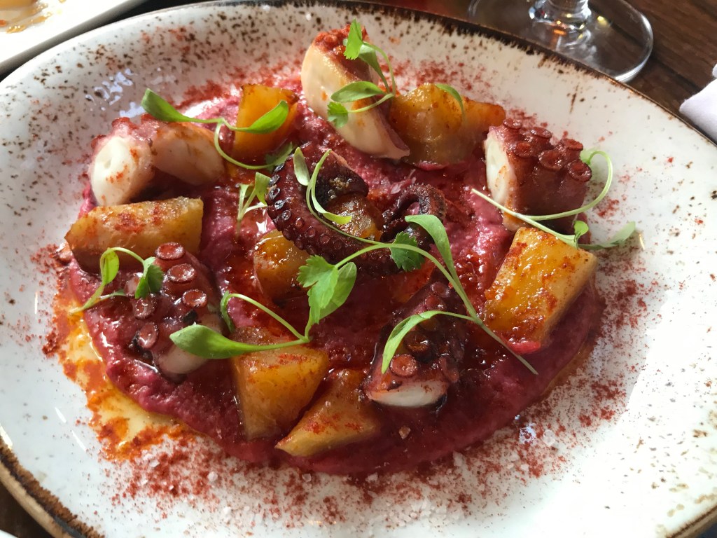 We also went for the octopus on a bed of beetroot and chickpea puree. It’s not the most tender octopus I’ve ever had, but personally I’m not a huge fan of the cold Spanish Galician octopus, so this was more to my taste. The puree was nice, but again, no outstanding flavours. The best thing about this dish was probably the beautiful appearance. I think the large chunks you can see are swede which I don’t often eat, so I’m not confident on how it should be cooked but I think I would’ve given it a bit more time to soften.