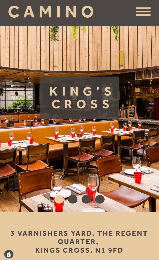We decided to try out Camino for the very simple reason that it has a branch at King’s Cross, and we needed to be close to the station that evening.