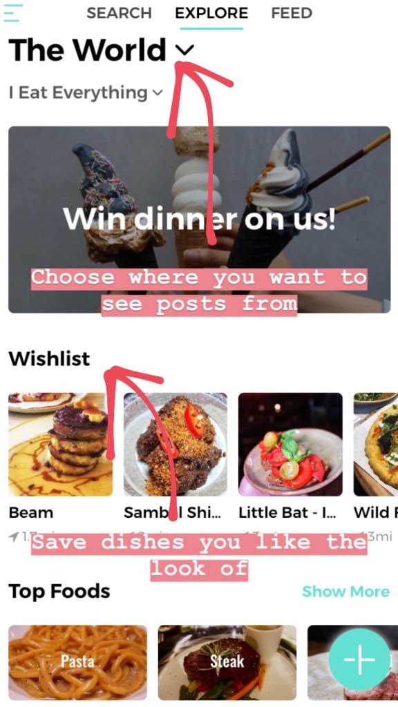 You can change the location to select where you want to view dishes from. I currently have this set to ‘The World’ so that I can see every review that is uploaded, but you can choose a specific city if you wish.