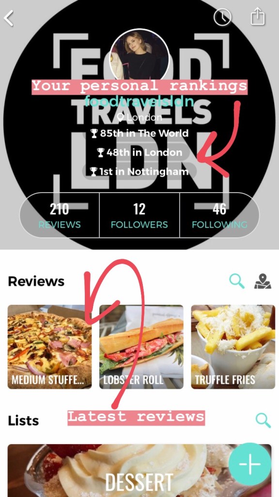 Your local/global rankings even extend into specific categories i.e. ’13th in London for dessert’